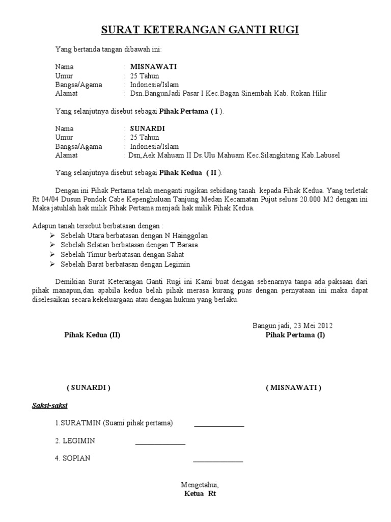 Surat Pernyataan Ganti Rugi Sebidang Tanah Pdf